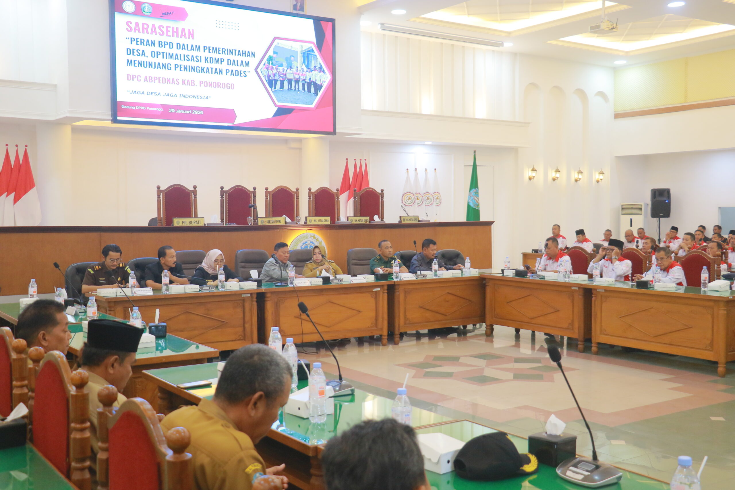 Sementara itu sarasehan anggota BPD se-Ponorogo dibuka oleh Plt Bupati Ponorogo Lisdyarita. Yang menjadi nara sumber selain Ketua DPRD Ponorogo juga dari Perdagkum, Kodim dan kejaksaan dan lain-lain. Sarasehan diikuti perwakilan anggota BPD desa di Ponorogo.